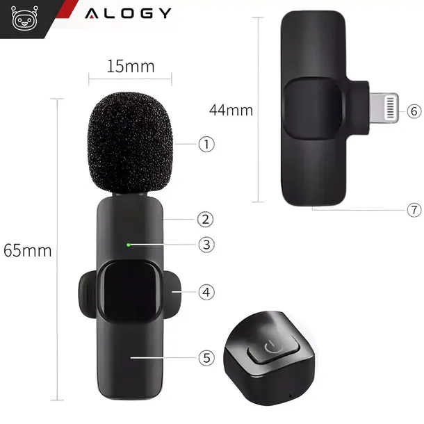 ▶️ 2x mikrofon krawatowy bezprzewodowy Alogy Lightning do Apple iPhone iPad małe mikrofony zestaw dwóch mikrofonów